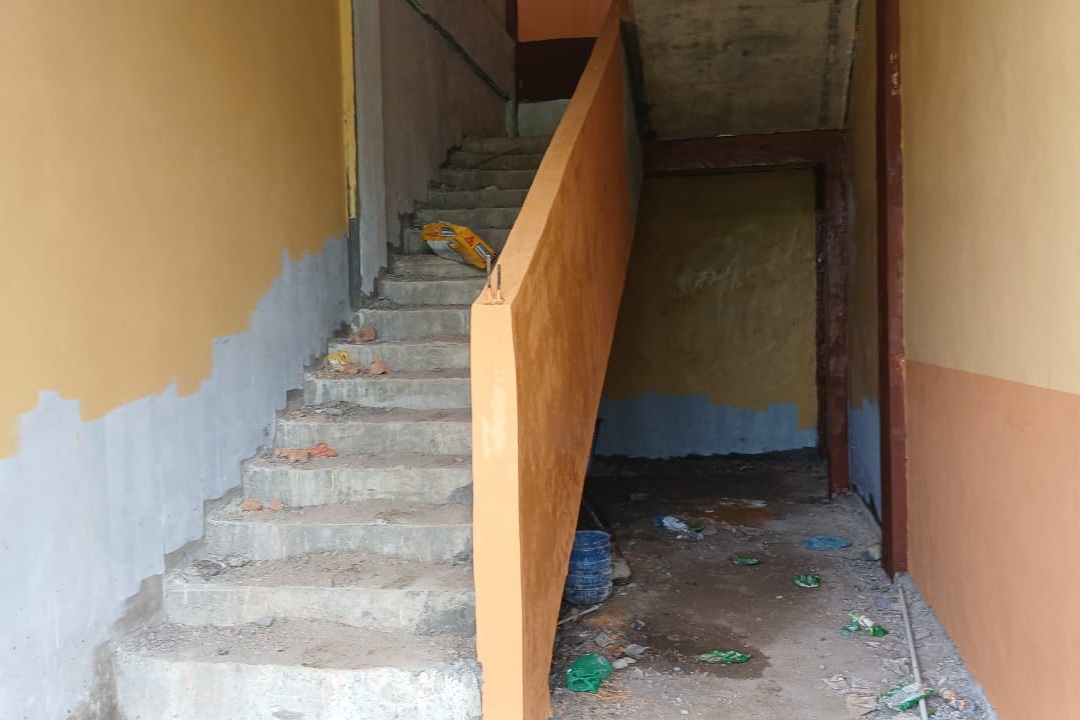 Tangga ke lantai 2 terlihat belum dirapikan
